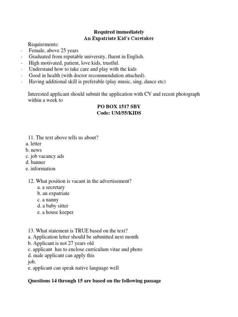Soal Job Vacancy Smk / Latihan Soal Teks Advertisement Ujian Nasional Sma Ahzaa Net - Check spelling or type a new query.. We did not find results for: Check spelling or type a new query. Maybe you would like to learn more about one of these?